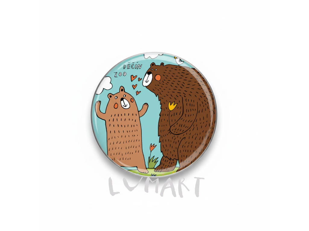Magnetická placka o průměru 5,6 cm. Ideální jako malý dárek, který lze umístit na ledničku, nebo jakoukoli jinou kovovou plochu.