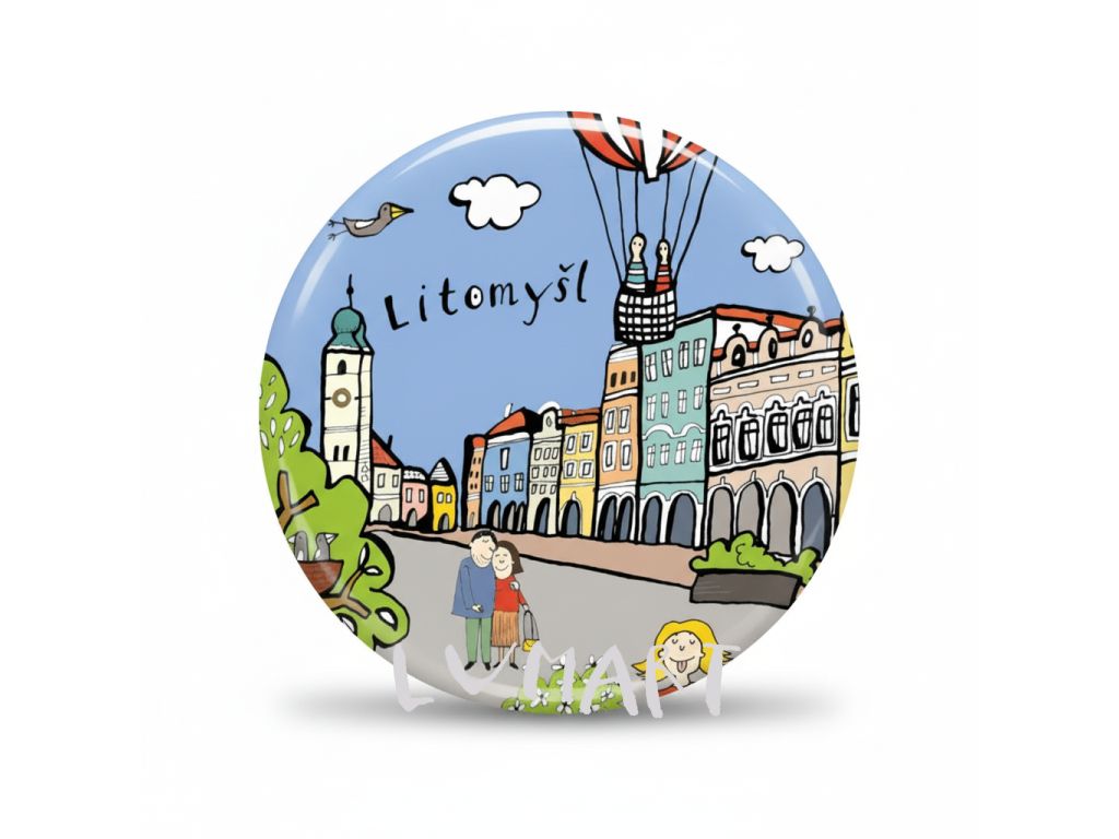 Magnetická placka o průměru 5,6 cm. Ideální jako malý dárek, který lze umístit na ledničku, nebo jakoukoli jinou kovovou plochu.