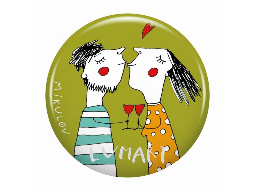 Magnetická placka o průměru 5,6 cm. Ideální jako malý dárek, který lze umístit na ledničku, nebo jakoukoli jinou kovovou plochu.
