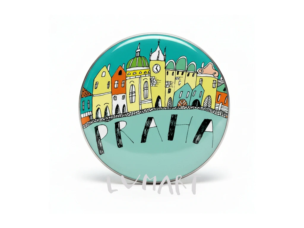 Magnetická placka o průměru 7,5 cm. Ideální jako malý dárek, který lze umístit na ledničku, nebo jakoukoli jinou kovovou plochu.