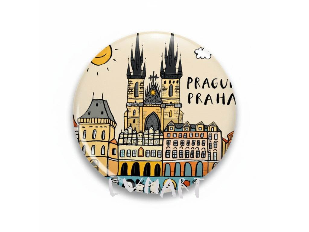 Magnetická placka o průměru 5,6 cm. Ideální jako malý dárek, který lze umístit na ledničku, nebo jakoukoli jinou kovovou plochu.