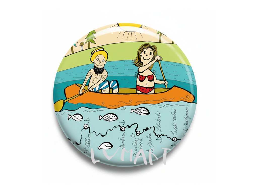 Magnetická placka o průměru 5,6 cm. Ideální jako malý dárek, který lze umístit na ledničku, nebo jakoukoli jinou kovovou plochu.