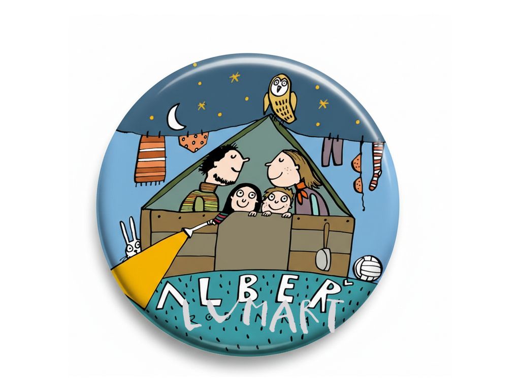 Placka se špendlíkem o průměru 5,6 cm. Ideální jako malý dárek, který lze připnout na oblečení či tašku.
