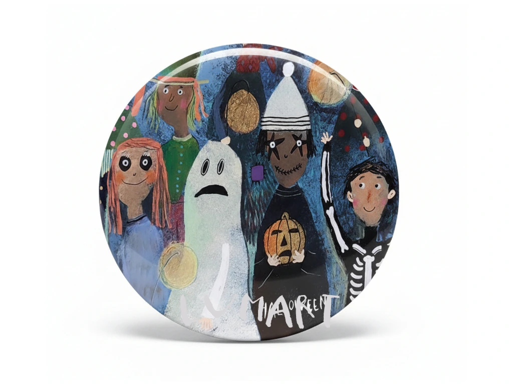 Placka se špendlíkem o průměru 5,6 cm. Ideální jako malý dárek, který lze připnout na oblečení či tašku.