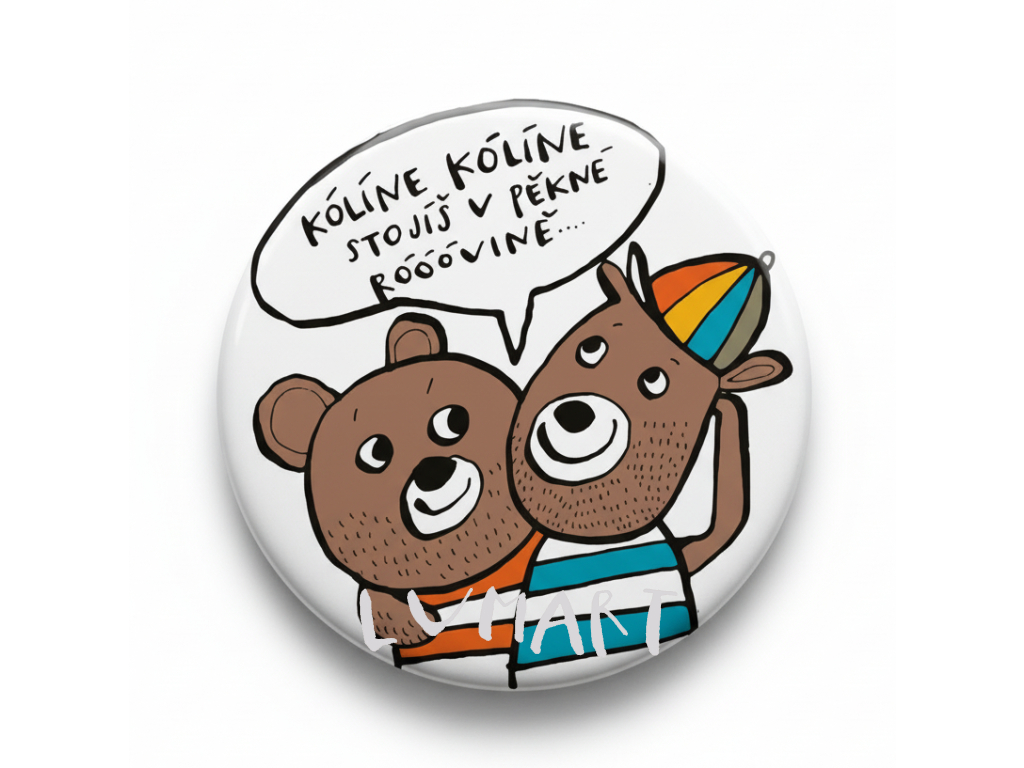 Placka se špendlíkem o průměru 5,6 cm. Ideální jako malý dárek, který lze připnout na oblečení či tašku.