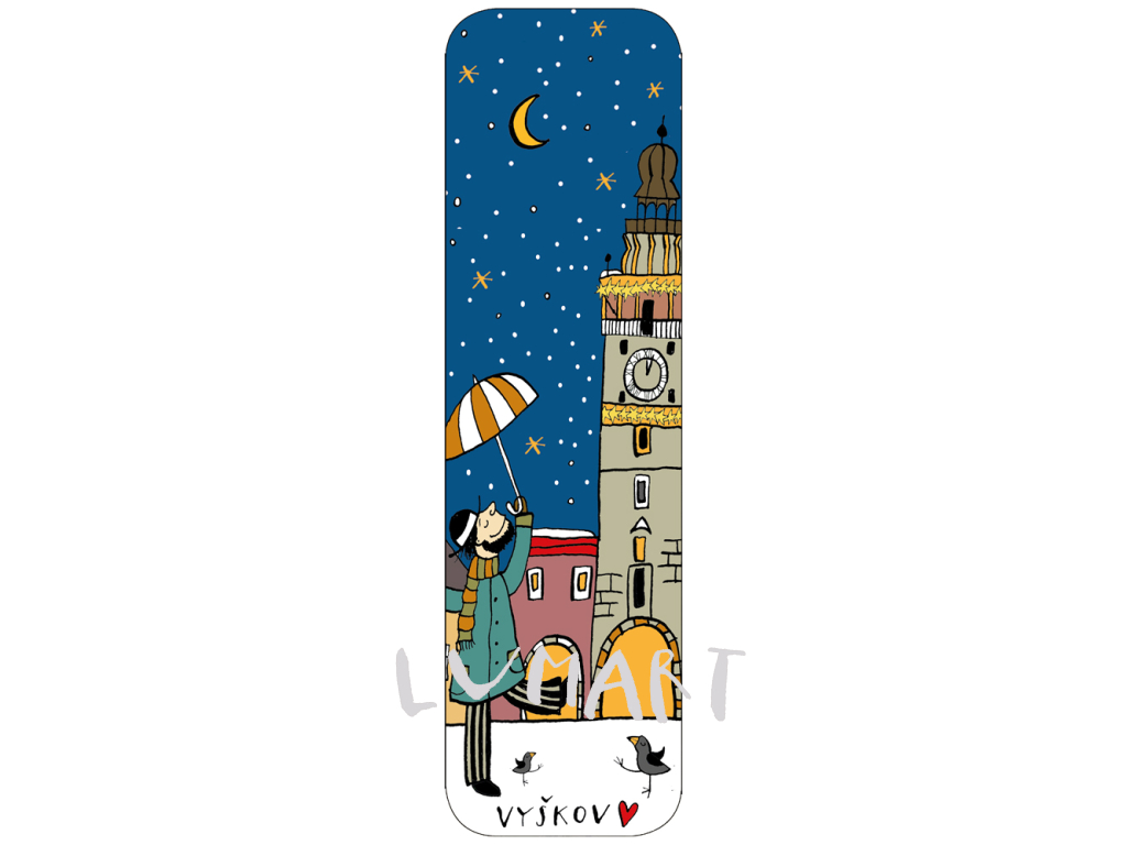 Papírová záložka s oboustrannou laminací vytištěná na kartonu vysoké gramáže. Neohýbá se, ale také není tvrdá jako pravítko. Ze zadní strany je stejný motiv.